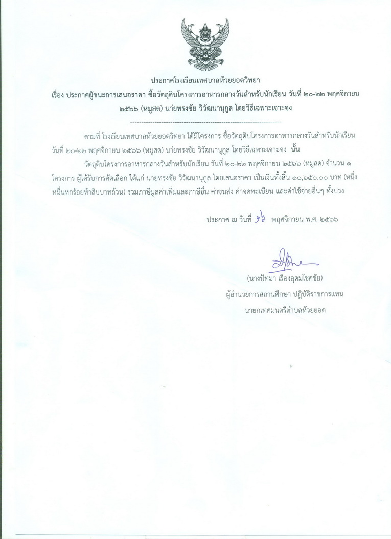 ประกาศโรงเรียนเทศบาลห้วยยอดวิทยา รายละเอียด เผยแพร่เมื่อ: วันพฤหัสบดี, 23 พฤศจิกายน 2566 09:18 ก่อนหน้า ต่อไป