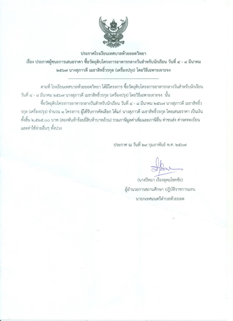 ประกาศโรงเรียนเทศบาลห้วยยอดวิทยา รายละเอียด เผยแพร่เมื่อ: วันอาทิตย์, 07 เมษายน 2567 07:57 ก่อนหน้า ต่อไป