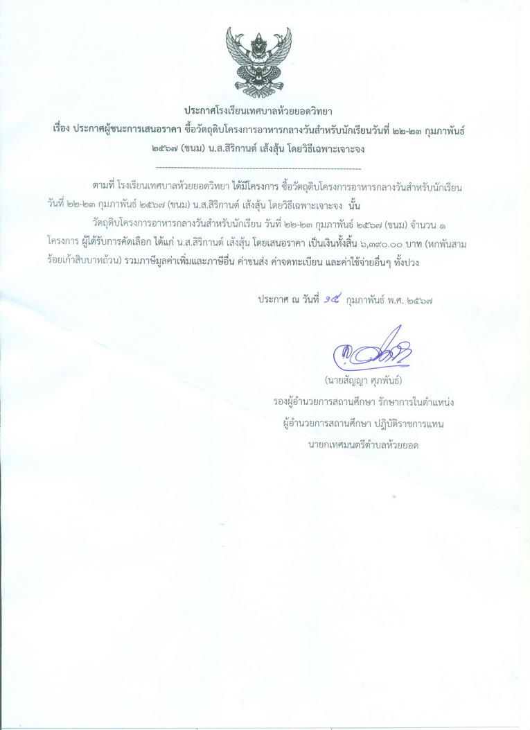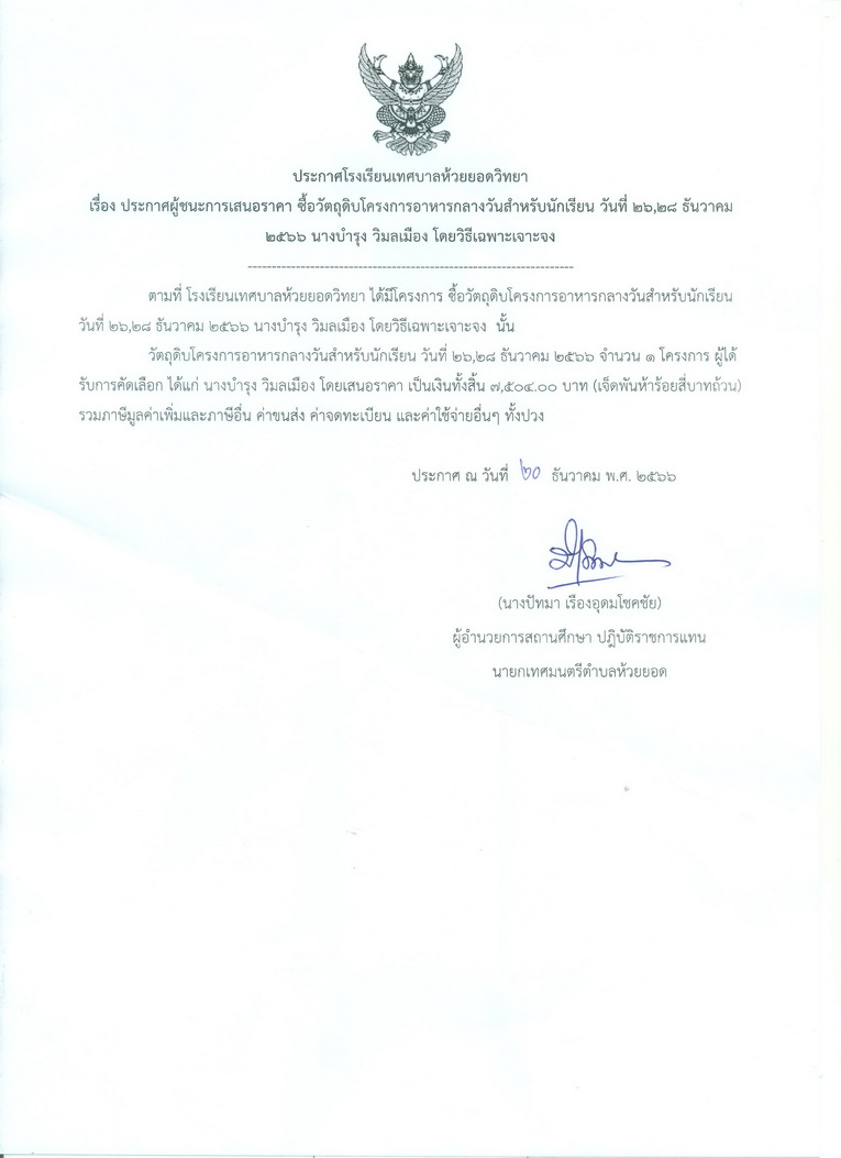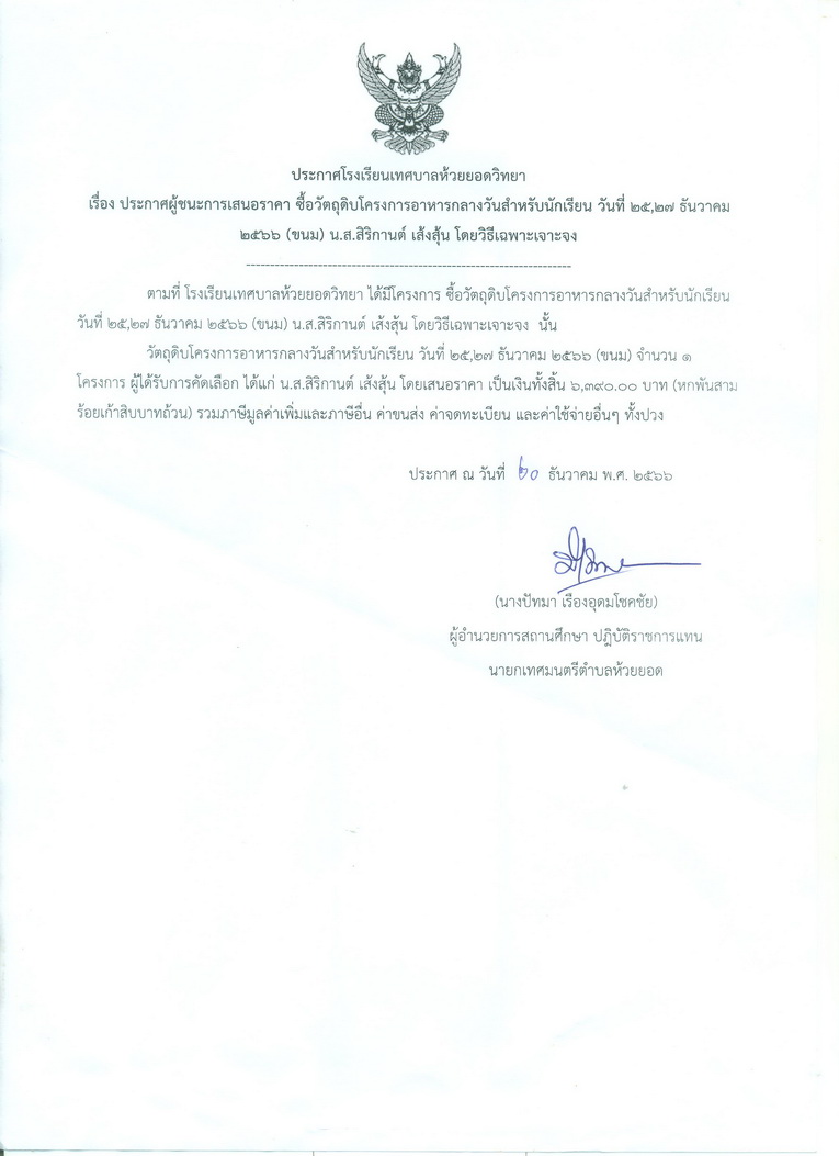 ประกาศโรงเรียนเทศบาลห้วยยอดวิทยา รายละเอียด เผยแพร่เมื่อ: วันพุธ, 10 เมษายน 2567 09:55 ก่อนหน้า ต่อไป