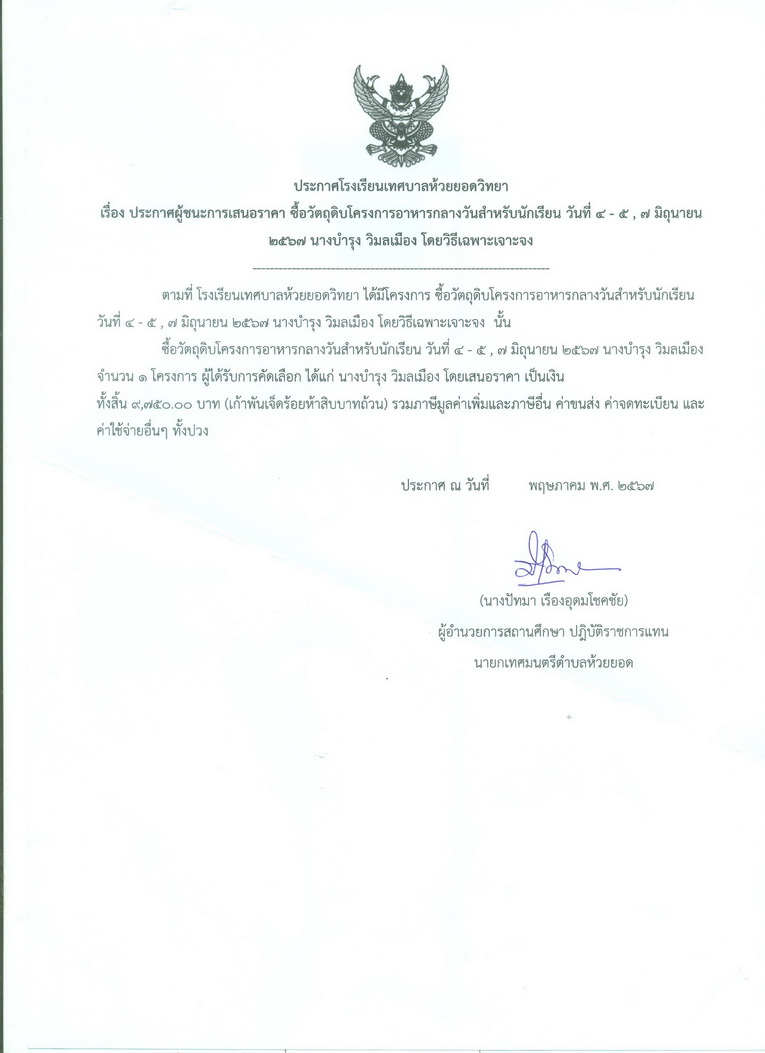 ประกาศโรงเรียนเทศบาลห้วยยอดวิทยา รายละเอียด เผยแพร่เมื่อ: วันจันทร์, 10 มิถุนายน 2567 04:50 ก่อนหน้า ต่อไป