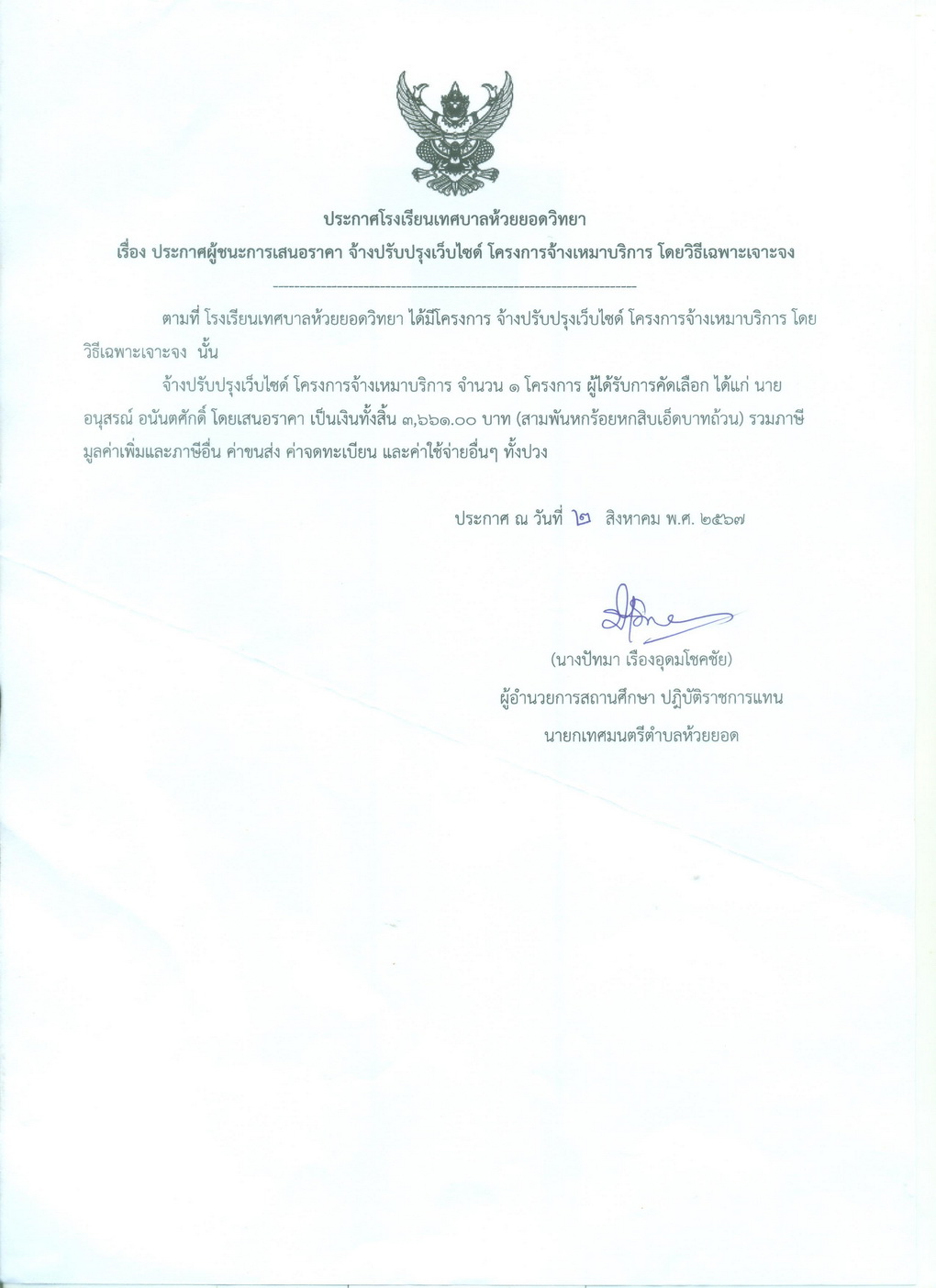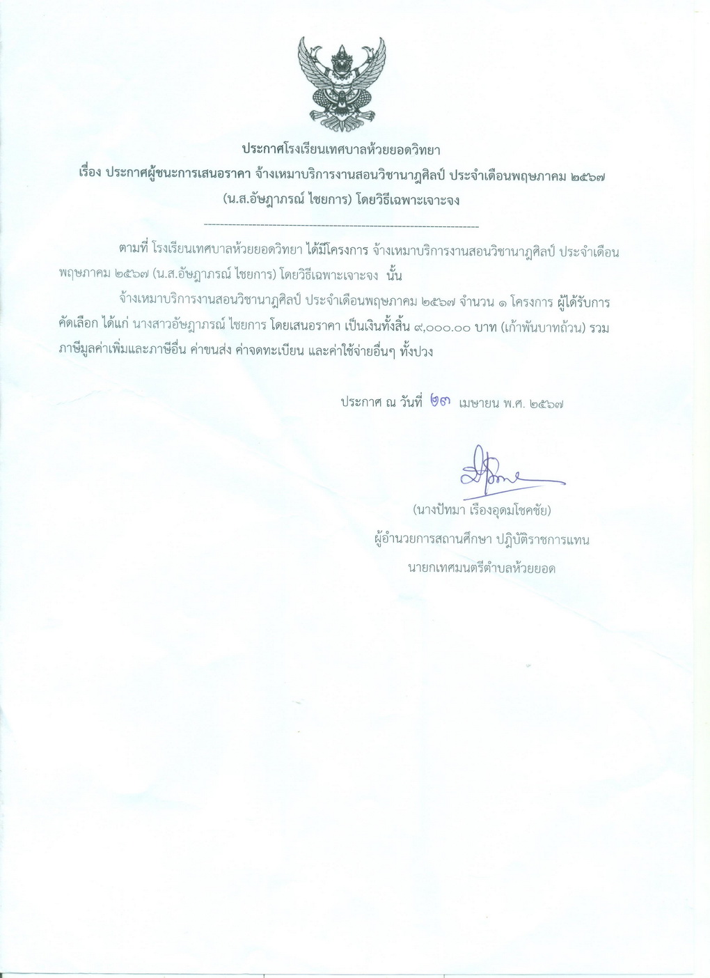 ประกาศโรงเรียนเทศบาลห้วยยอดวิทยา รายละเอียด เผยแพร่เมื่อ: วันเสาร์, 14 กันยายน 2567 14:23 ก่อนหน้า ต่อไป