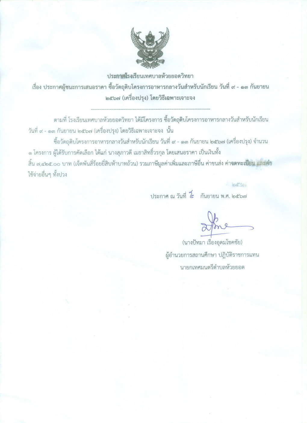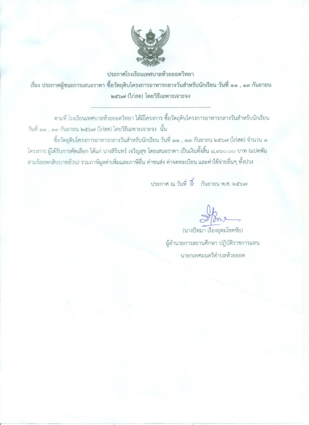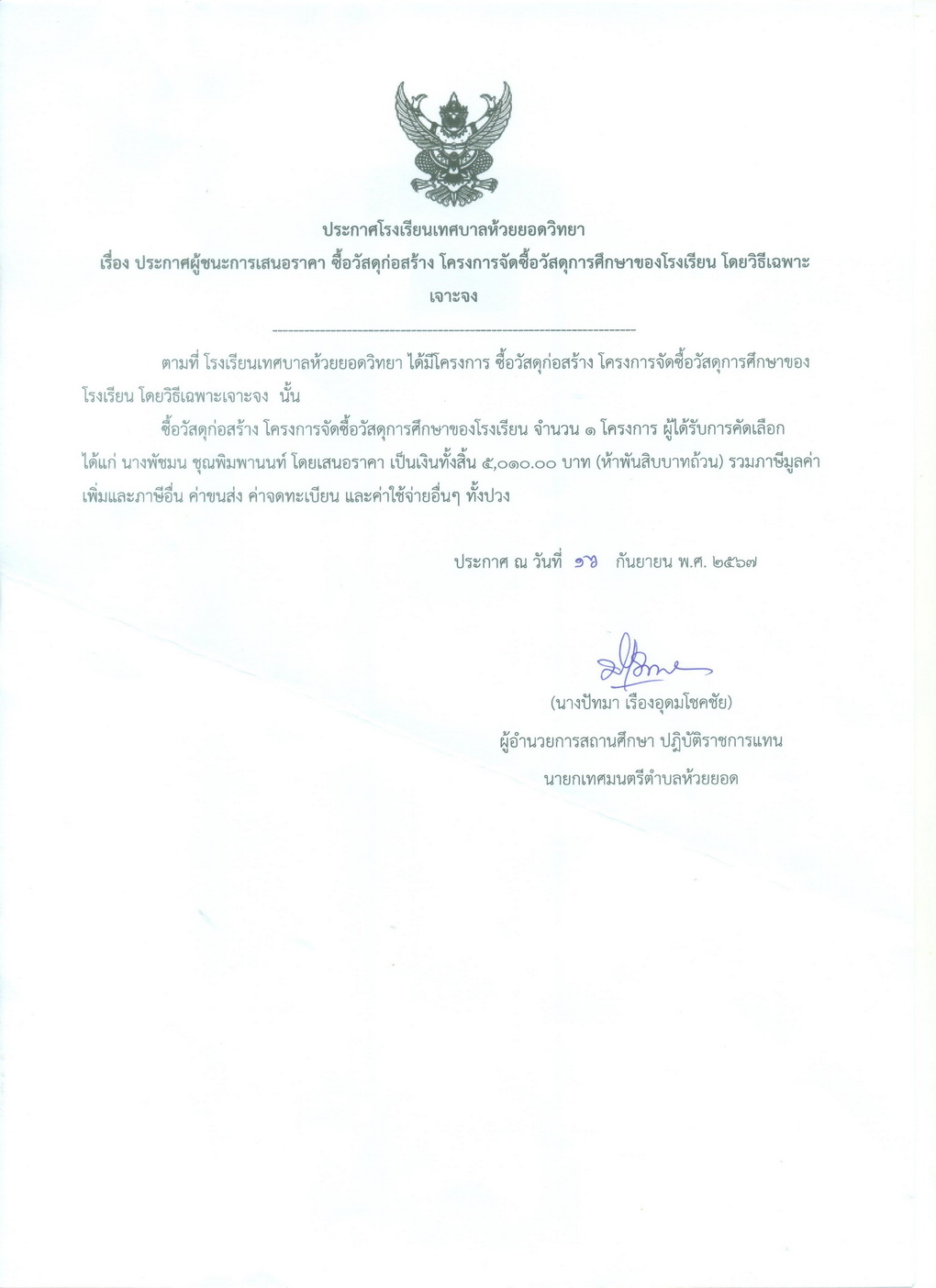 ประกาศโรงเรียนเทศบาลห้วยยอดวิทยา