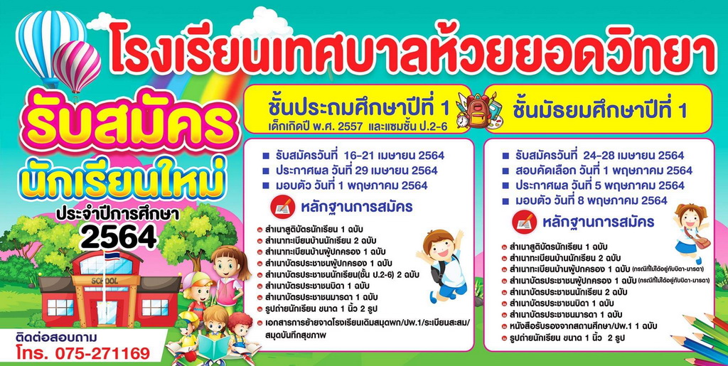 ประกาศโรงเรียนเทศบาลห้วยยอดวิทยา
