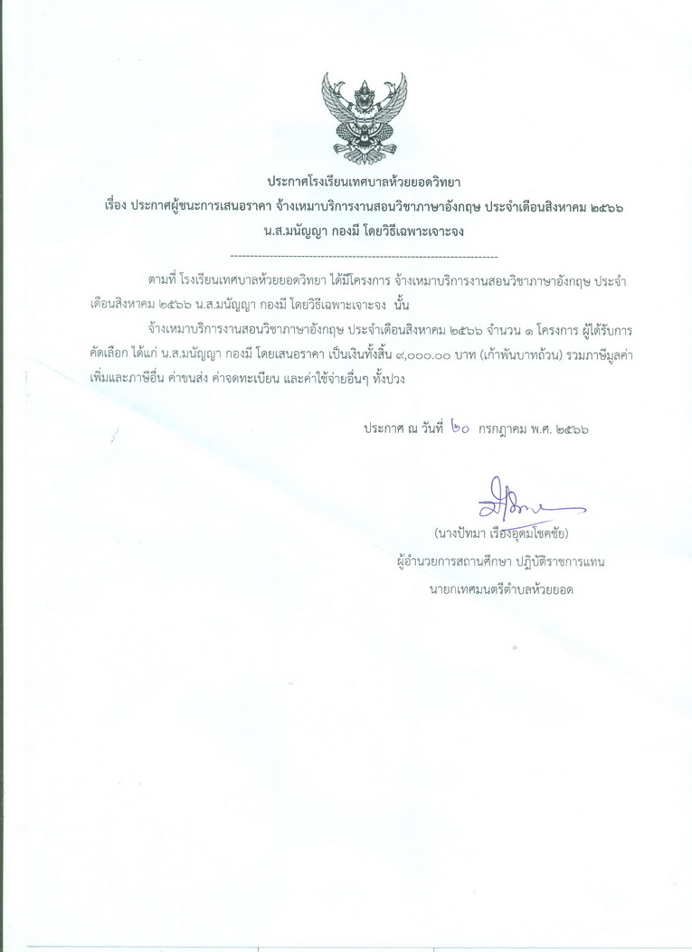 ประกาศโรงเรียนเทศบาลห้วยยอดวิทยา รายละเอียด เผยแพร่เมื่อ: วันเสาร์, 26 สิงหาคม 2566 04:40 ก่อนหน้า ต่อไป