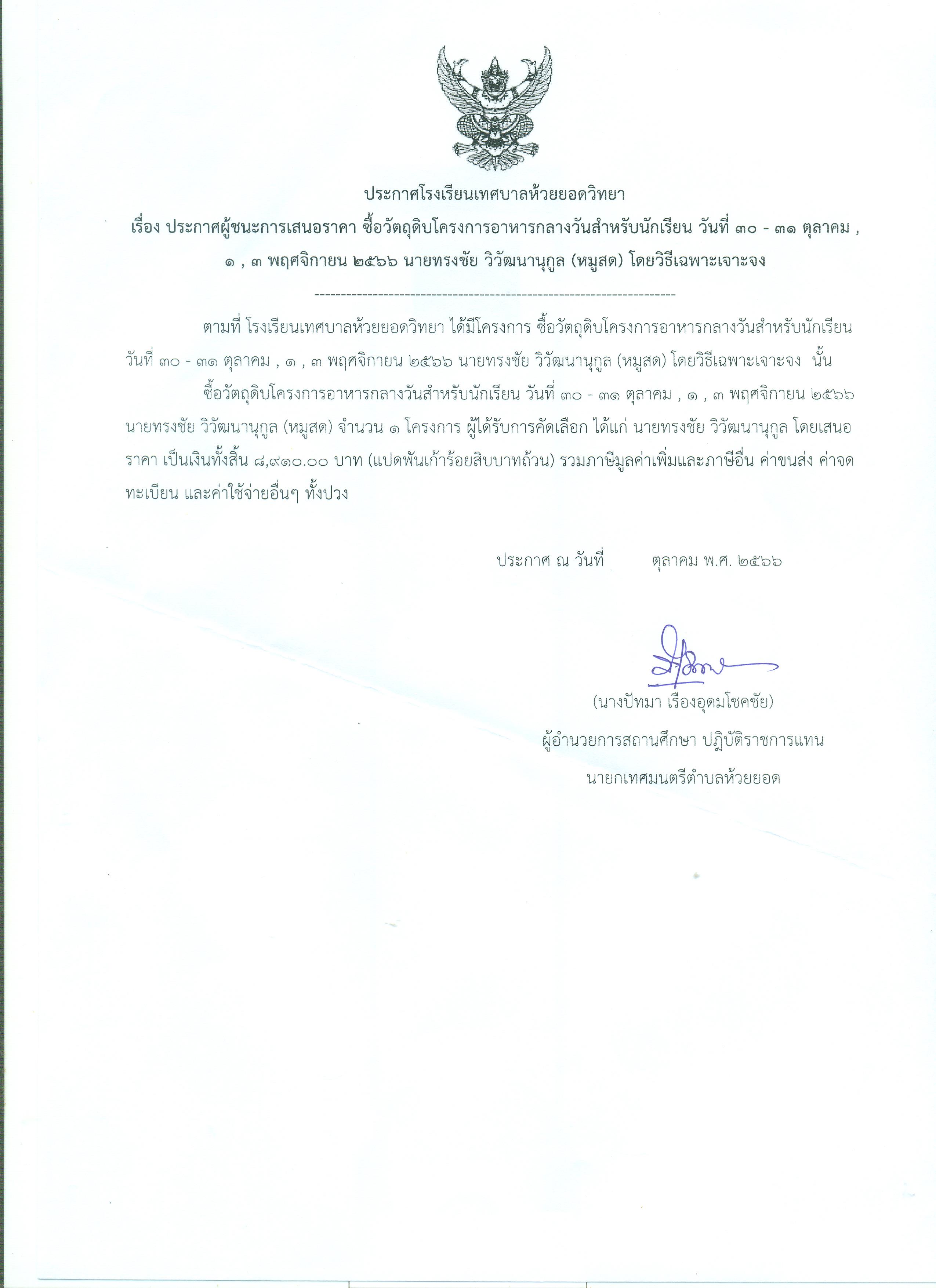 ประกาศโรงเรียนเทศบาลห้วยยอดวิทยา รายละเอียด เผยแพร่เมื่อ: วันเสาร์, 11 พฤศจิกายน 2566 03:19 ก่อนหน้า ต่อไป