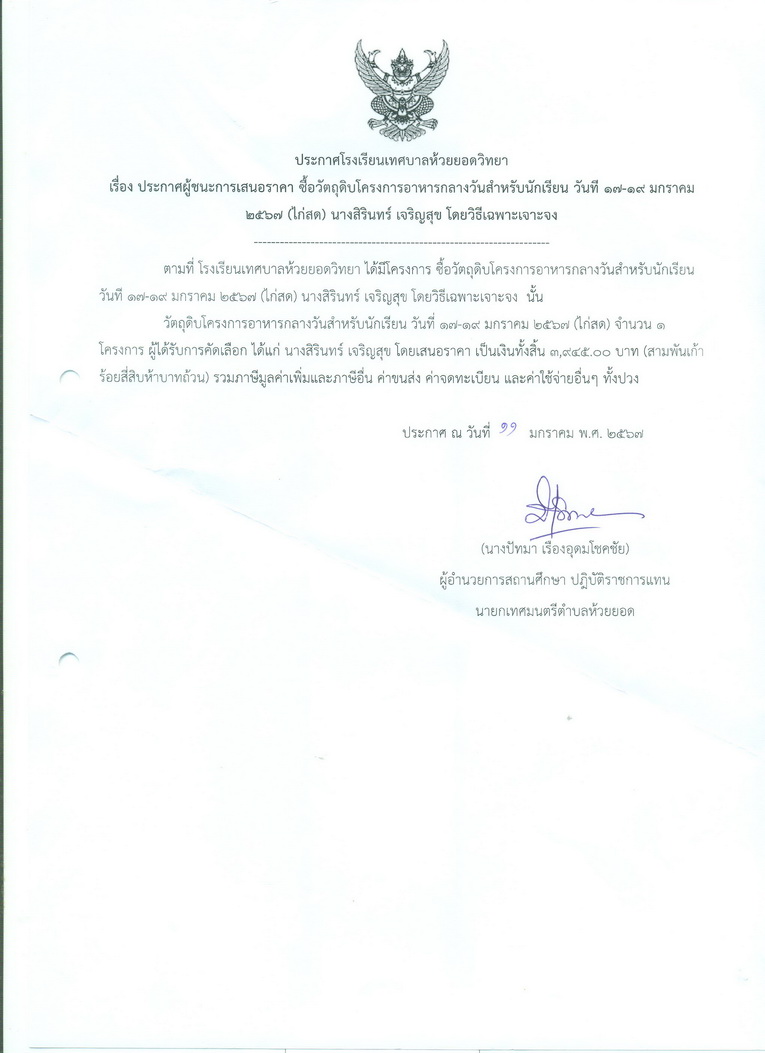 ประกาศโรงเรียนเทศบาลห้วยยอดวิทยา รายละเอียด เผยแพร่เมื่อ: วันพุธ, 31 มกราคม 2567 12:21 ก่อนหน้า ต่อไป