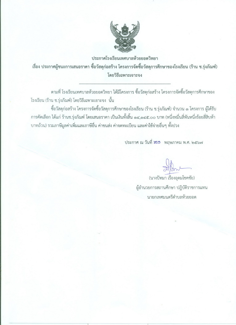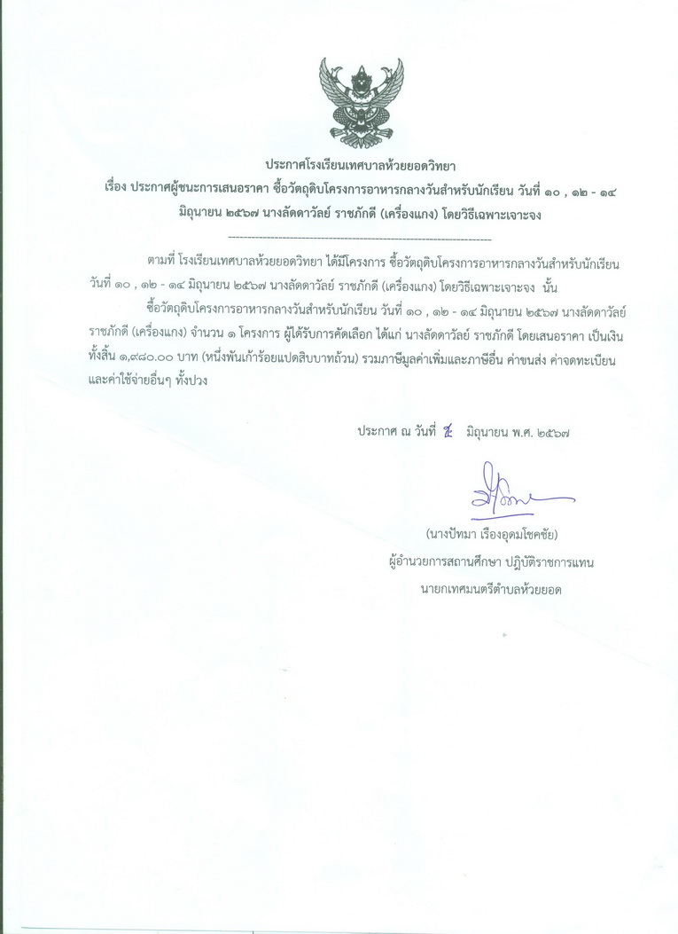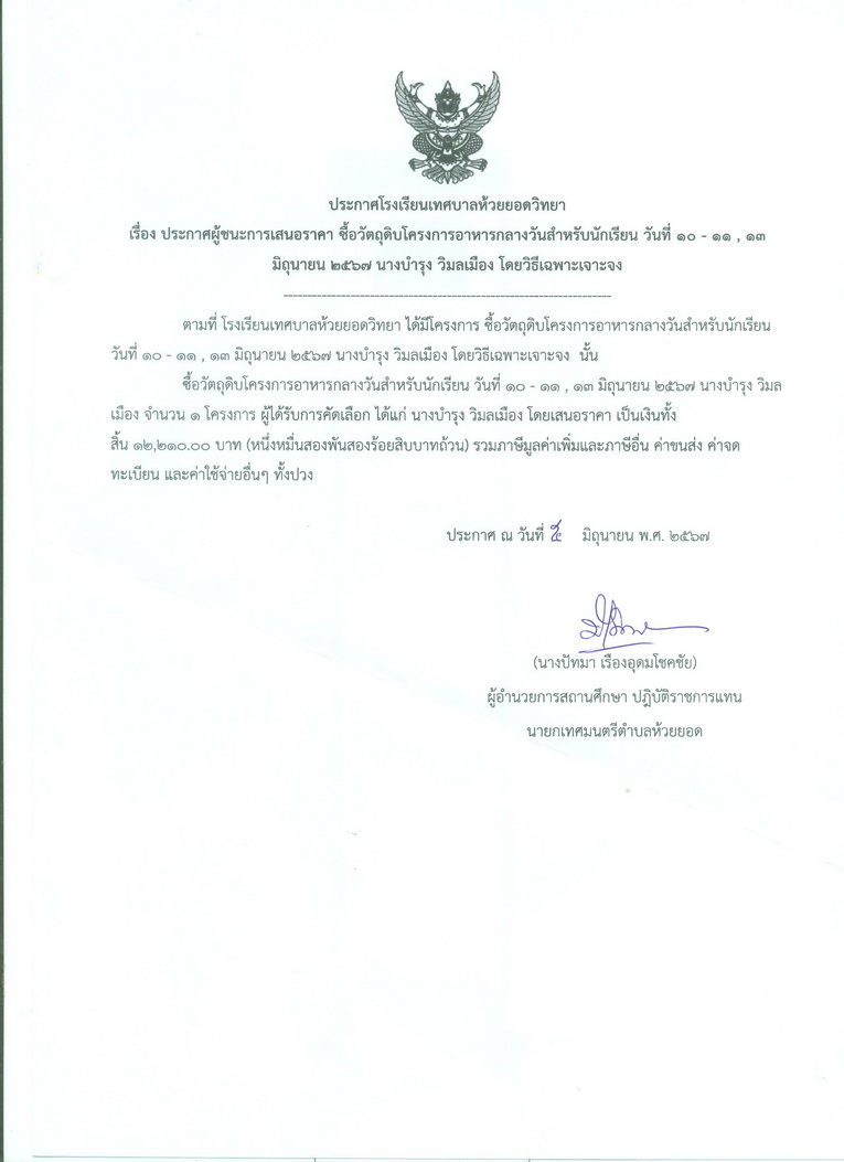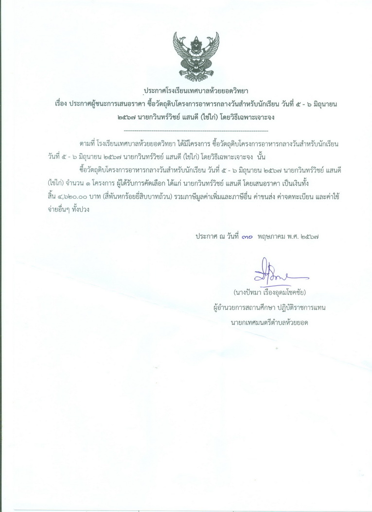 ประกาศโรงเรียนเทศบาลห้วยยอดวิทยา รายละเอียด เผยแพร่เมื่อ: วันจันทร์, 10 มิถุนายน 2567 04:50 ก่อนหน้า ต่อไป