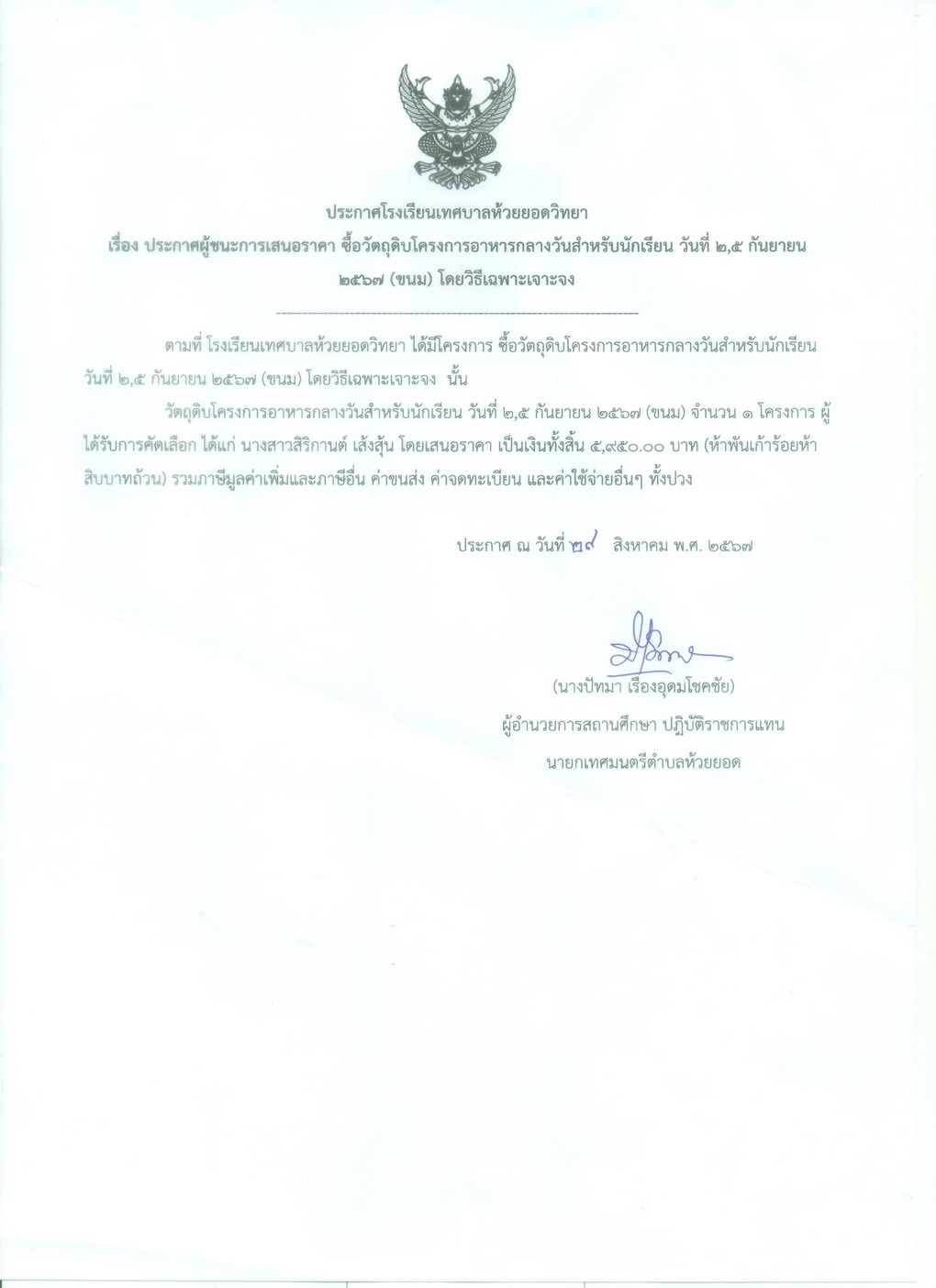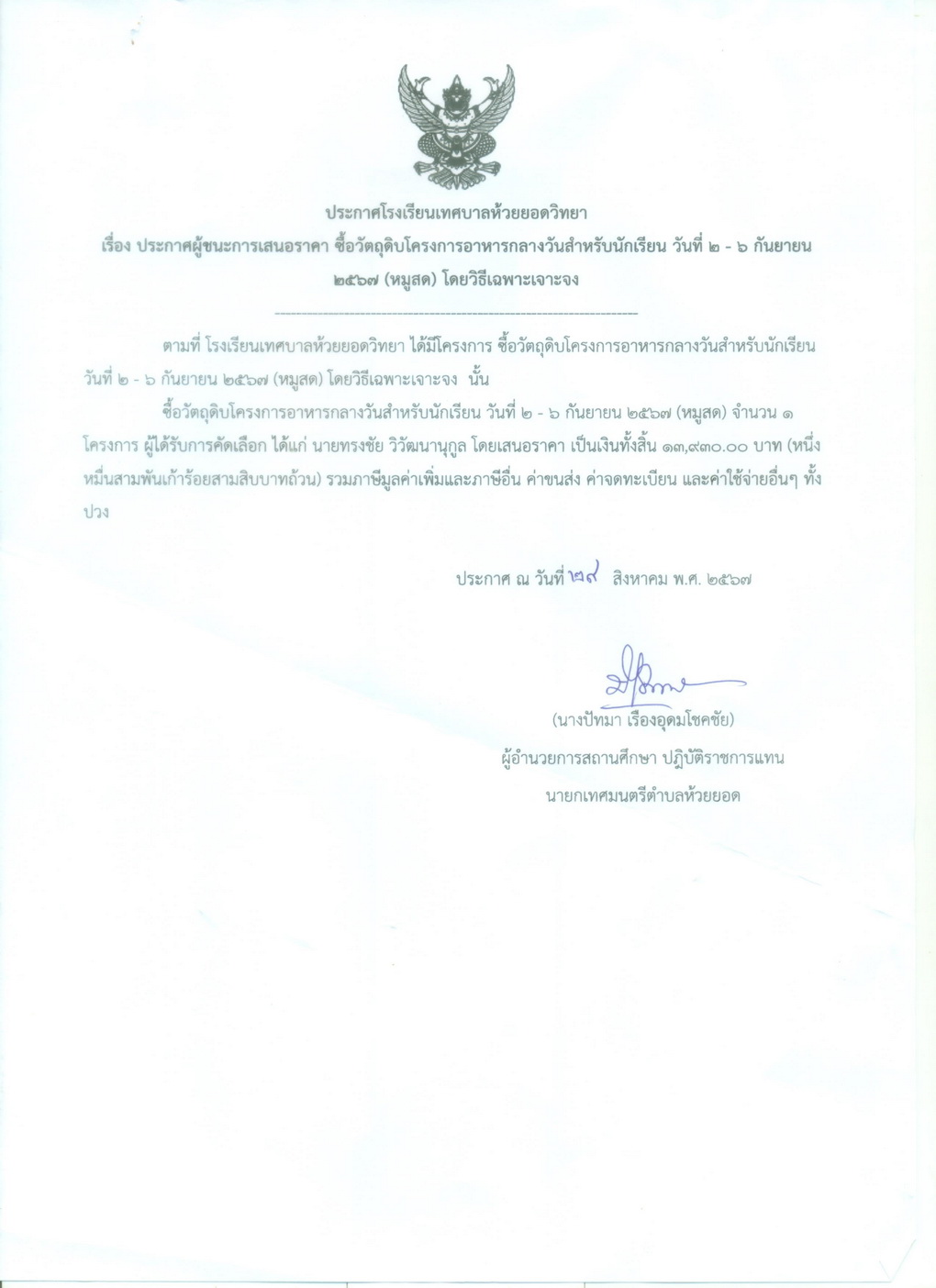 ประกาศโรงเรียนเทศบาลห้วยยอดวิทยา
